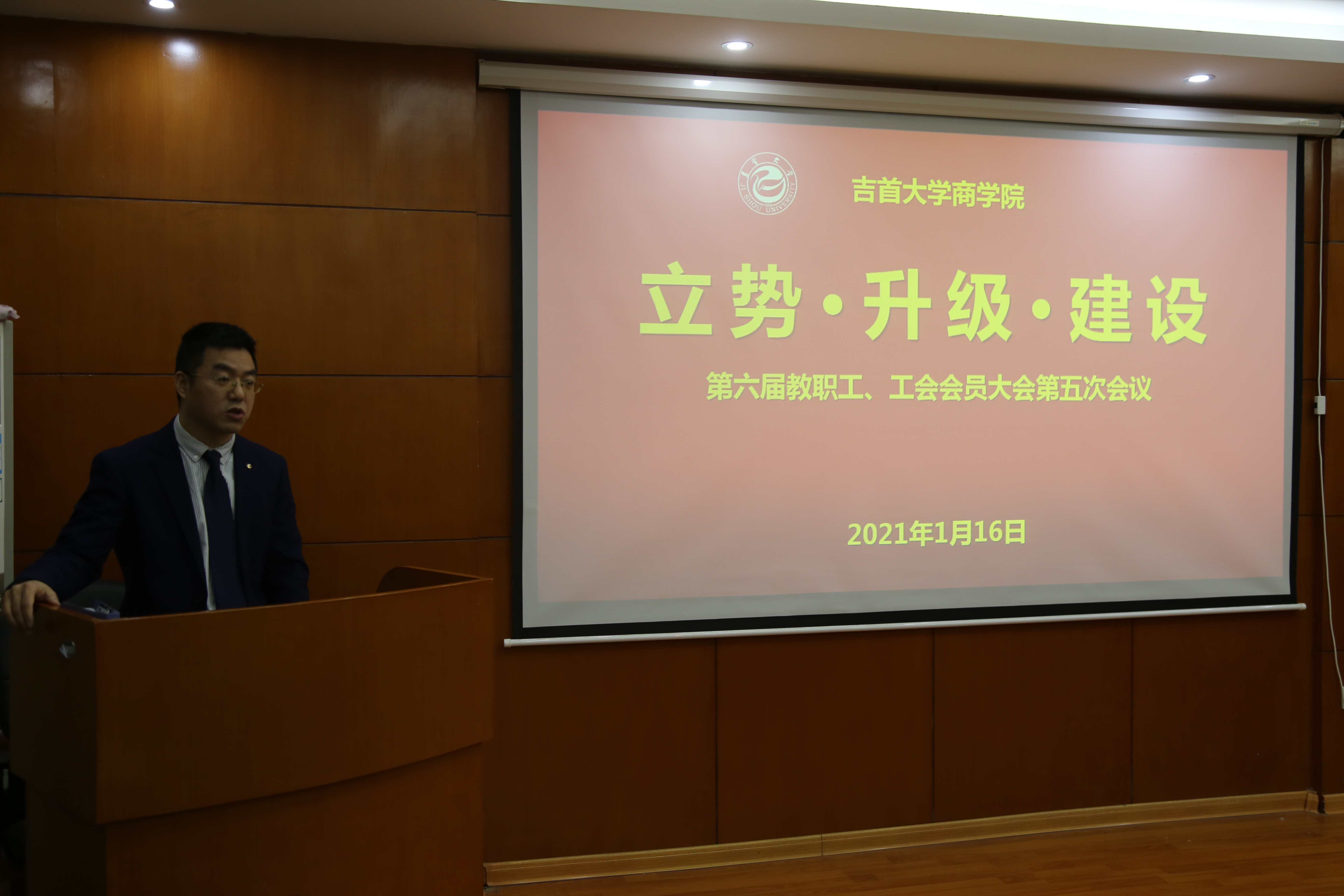 1月16日上午,学院第六届教职工、工会会员大会第五次会议在院会议室召开,校工会常务副主席肖松到会指导,全院教职工参加了会议,会议由院党委副书记、院工会主席胡锦湘主持。